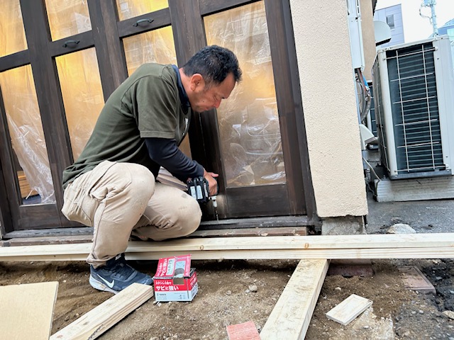 ウッドデッキ作成前の準備中