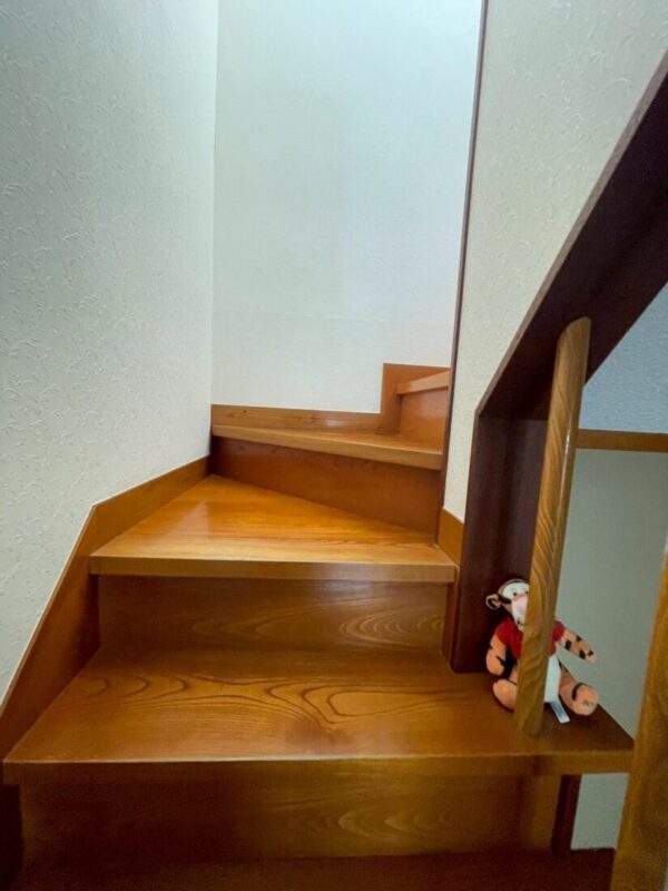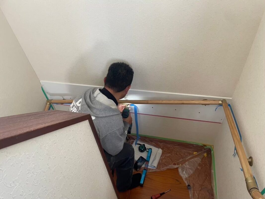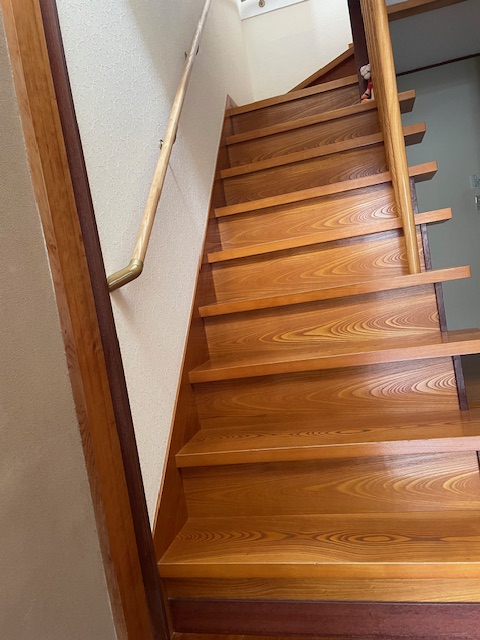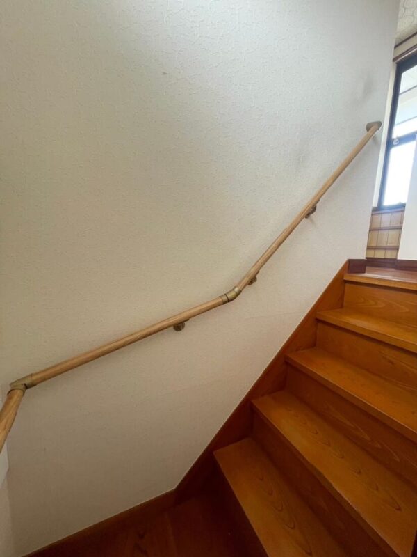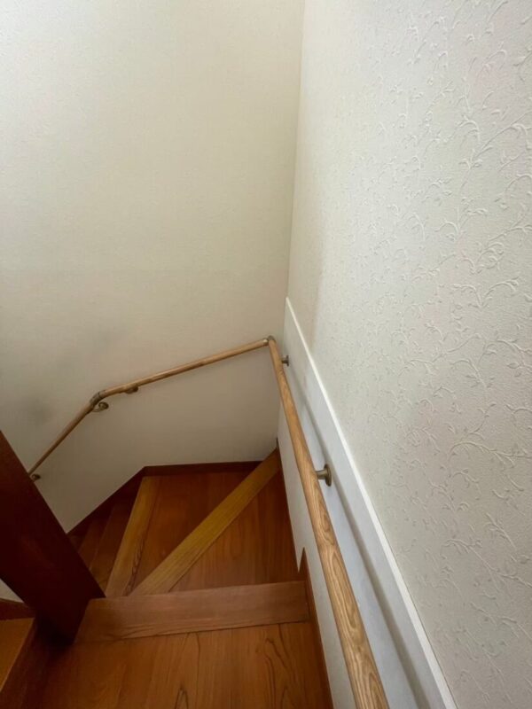 1階から2階への階段に手すりを設置するリフォームを行いました。お母様が日々安心して上り下りできるよう、握りやすい位置に手すりを設置いたしました。お母様の安全を第一に考え、細かいご要望にもお応えしました。
