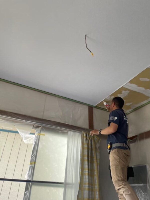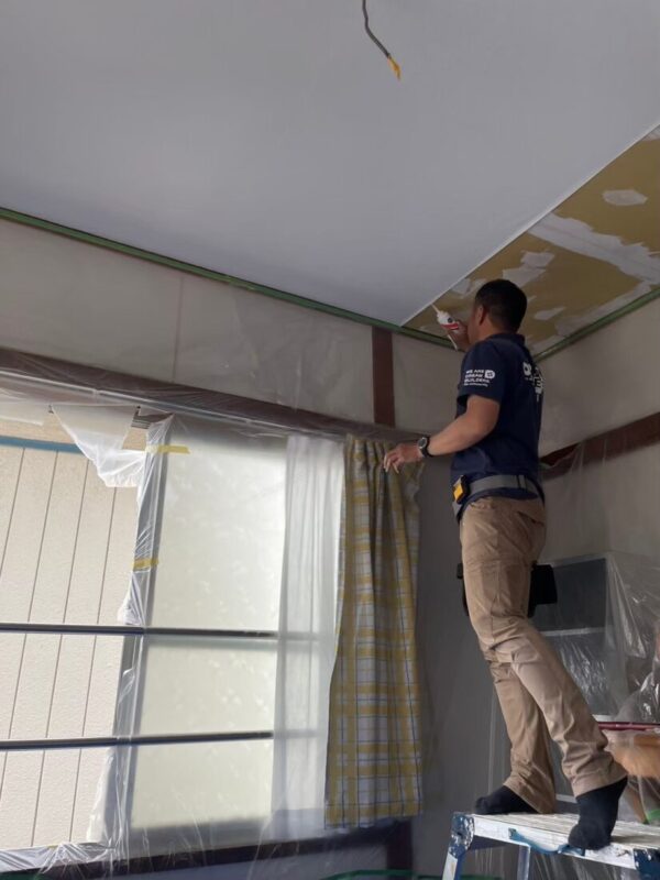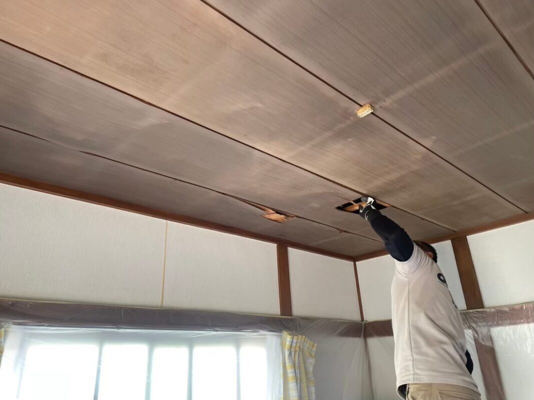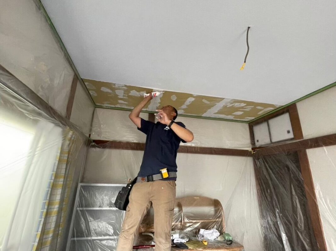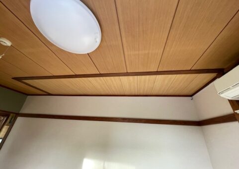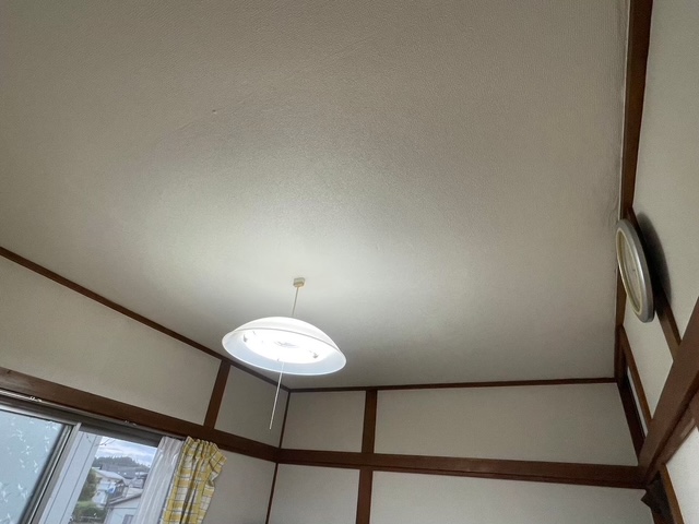 リフォーム後は、痛んでいた天井が新しくなり、お部屋全体が明るく、清潔感あふれる空間に生まれ変わりました。石膏ボードと壁紙で仕上げることで、和室の趣を残しつつも、現代的な快適さをプラスすることができました。お客様にも大変お喜びいただけた、満足度の高いリフォームとなりました。