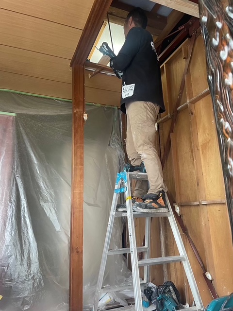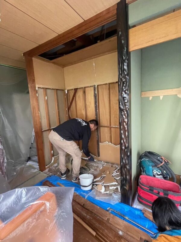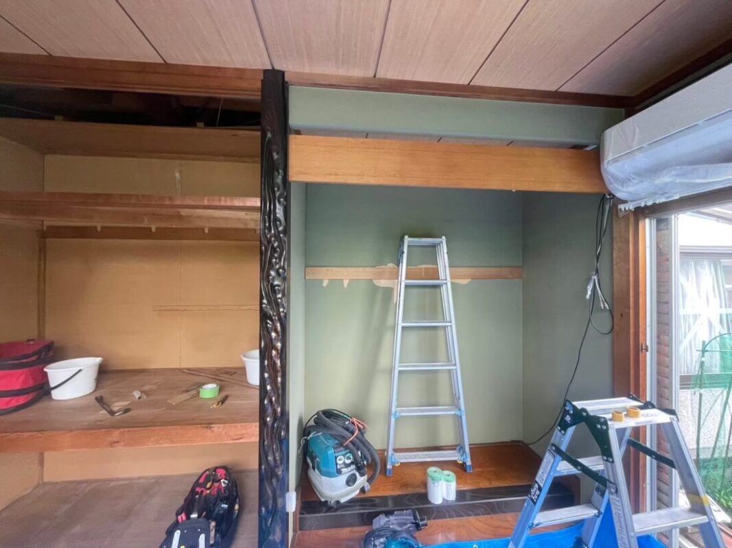 押入れと床の間の壁・天井を現代的なデザインを取り入れるために解体しておりす。