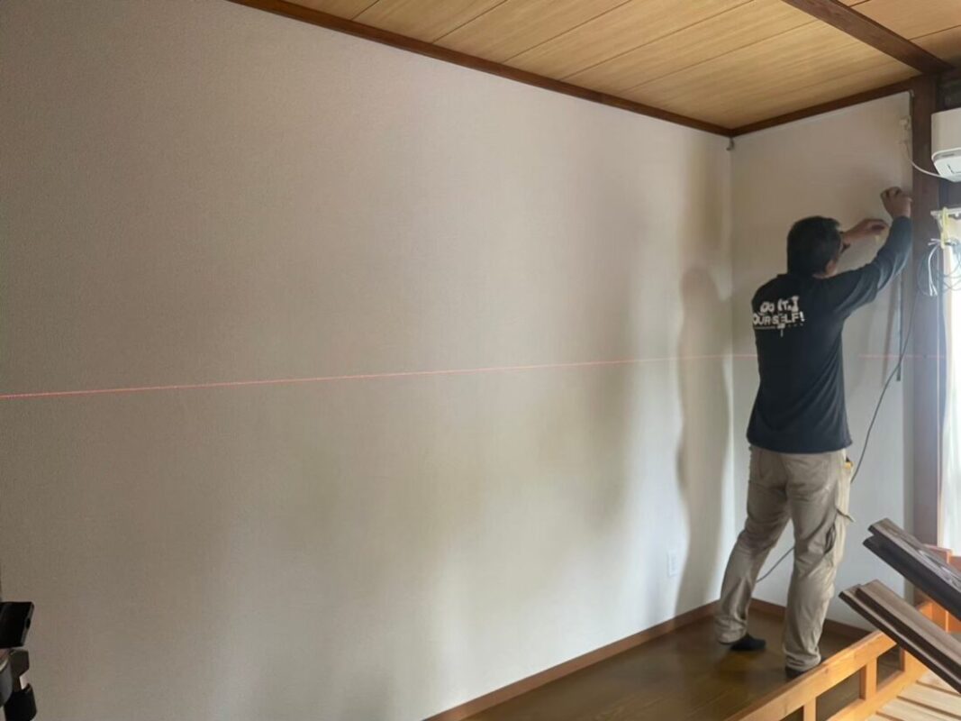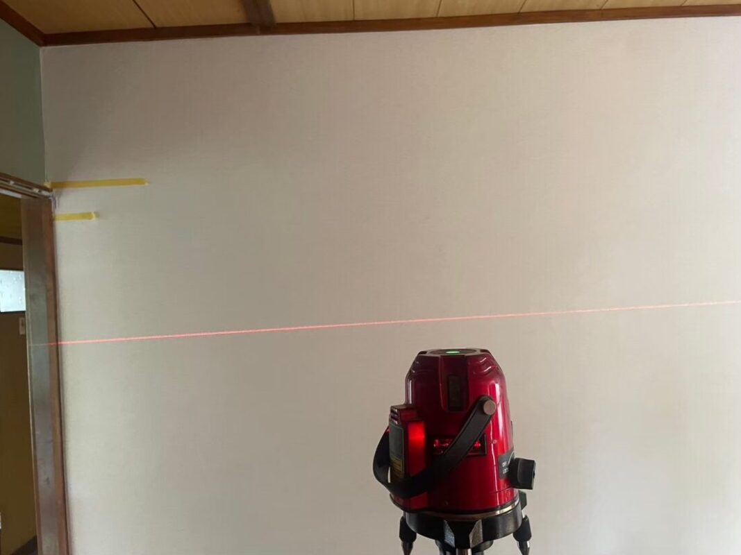 長押を取り付ける際は、まっすぐ正確に設置することは非常に重要です。レーザー墨出し器を使えば、壁にレーザー光で真っ直ぐな線を示すことができ、この線に合わせて長押を貼ることで、歪みなく、非常に正確な施工が可能になります。これにより、仕上がりの美しさだけでなく、作業効率も向上します。