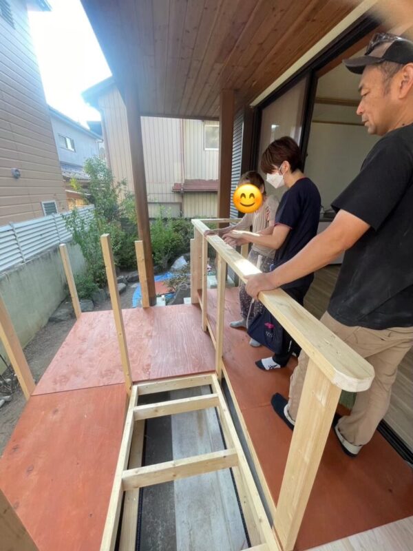⇊ 手すりの高さを確認後塗装