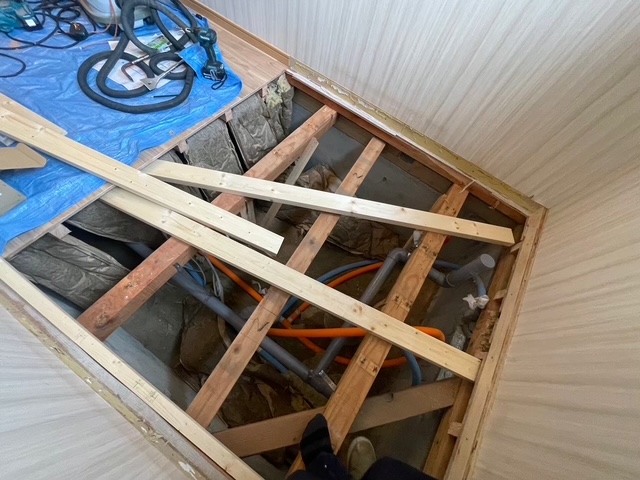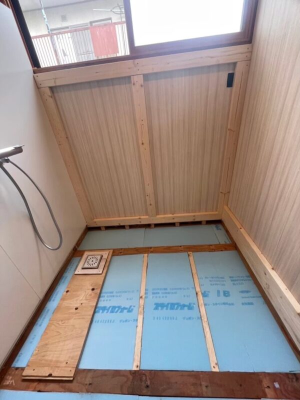 ⇊ 浴室の床下前面に断熱材を施工しております。