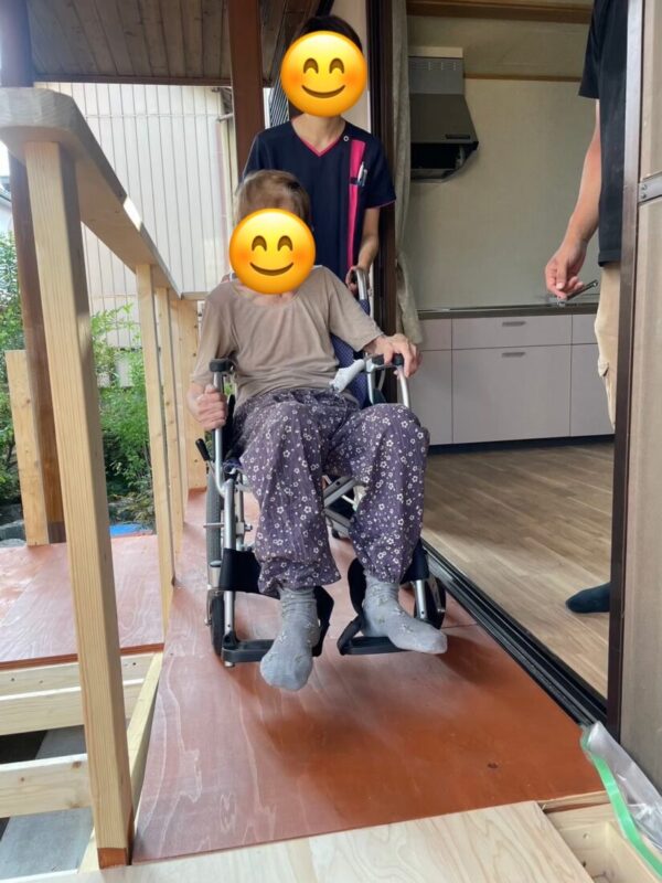 S様に実際にみていただくことで、使い心地や移動のしやすさを確認できます。そうすることで、本当に快適で安全なスロープができます。