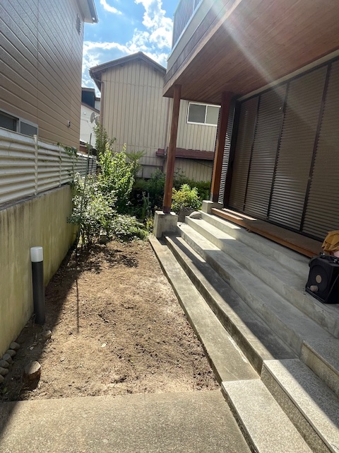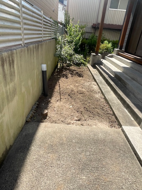 スロープ設置工事をスムーズに進めるため、事前に雑草の除去作業を行いました。