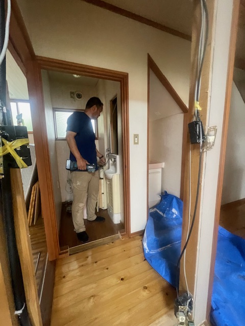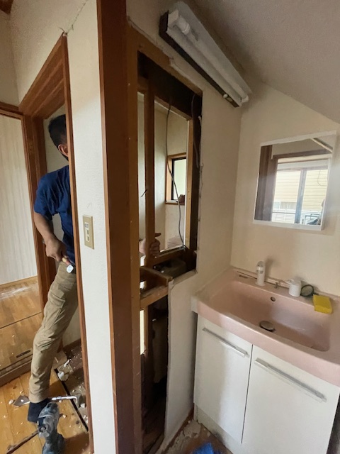 ⇊ トイレの壁解体中